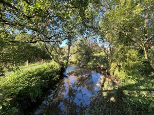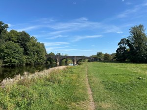 Continue past the allotments and after the gate beside the stables, keep left and continue past the weir then through woods and across the field to Brungerley Bridge.